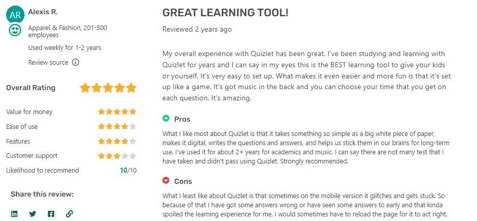 Quizlet reviews and testimonials