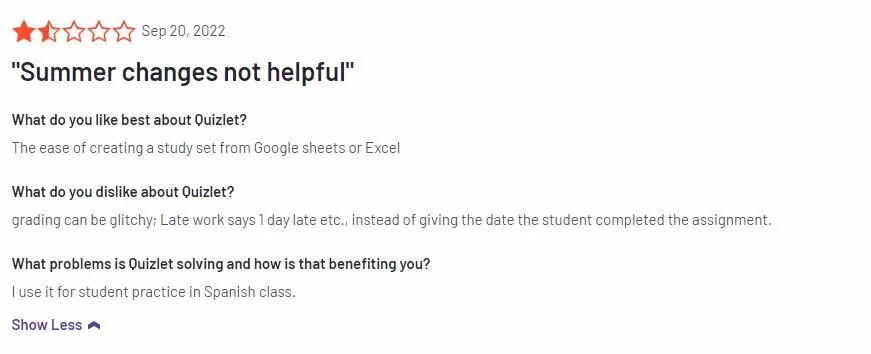 What do you dislike about Quizlet?
